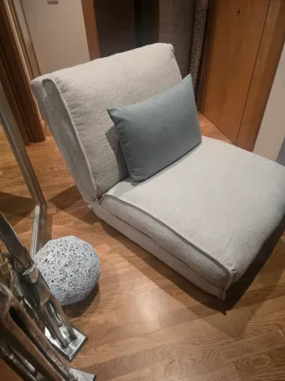 Sofá cama en perfecto estado, utilizado solo una vez. Es muy cómodo y cuenta con un diseño moderno. - Color beige. - Tapizado en tela. - utilizado 1 vez. Traslado por cuenta de comprador. Logroño. un piso 6.