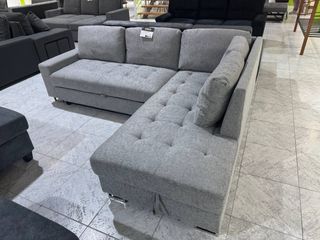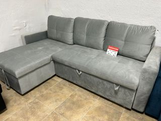 Sofá cama gris NUEVO con chaislongue y arcón