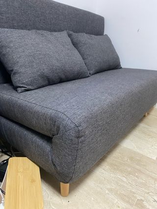 Sofá cama de dos plazas en color gris. En perfecto estado. Vendo por no usar. (Solo usado una vez). - Tapicería de tela. - Diseño moderno y funcional.