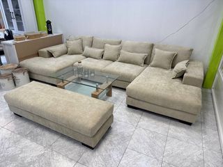 Sofá rinconera modular tapizado en tela de chenilla o lino, color beige claro. Ideal para salones grandes. Incluye cojines y un gran escabel/puf. Producto 100% nuevo. Se entrega en su embalaje de fábrica. Luminosidad y calidez. 📲 639*116*436 - Judith ☎️ ✅Pagos y envios a contra - rembolso ✅ ✅Envios de 1 a 4 dias. ✅ ✅Envio de factura. ✅ ✅Garantia de 2 años.✅ ✅Productos completamente Nuevos ✅ ☎️ Tienes dudas? , no dudes en comunicarte con nosotros, atendemos 24HRS.☎️