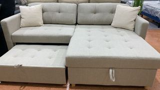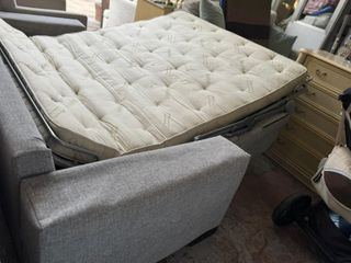 Sofá cama en perfecto estado, casi nuevo. Ideal para aprovechar el espacio. - Tapicería de tela. - Color gris neutro. - Hacemos entregas a domicilio.