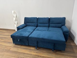 Sofá cama versátil, perfecto para la sala de estar o como mueble principal en una recámara. Tapizado en azul. Dispone de chaise longue con arcón. Es completamente nuevo. Se entrega en su embalaje original. Doble función. 📲 639*116*436 - Judith ☎️ ✅Pagos y envios a contra - rembolso ✅ ✅Envios de 1 a 4 dias. ✅ ✅Envio de factura. ✅ ✅Garantia de 2 años.✅ ✅Productos completamente Nuevos ✅ ☎️ Tienes dudas? , no dudes en comunicarte con nosotros, atendemos 24HRS.☎️