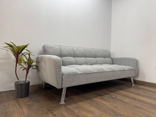 Sofá cama en perfecto estado, casi sin uso. Su diseño moderno se adapta a cualquier espacio. - Tapizado en tela. - Color gris. - Estructura robusta.