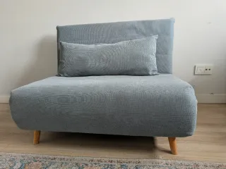 Sillón cama de la marca Maison du Monde modelo Nio en color verde agua. - Topper visco y cojín decorativo incluido. - Muy bien cuidado, único desperfecto de rotura de una cremallera (no visible) Recogida en persona en Pozuelo de Alarcón