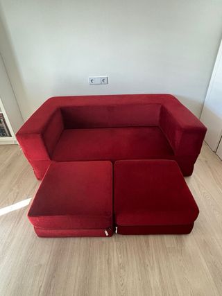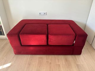 Sofá cama Jaxx Zipline de diseño moderno. Pieza unica comprada en EE.UU. Hace 4 años - Tapicería de ante. - Color rojo vibrante. - Estructura robusta. - Cama doble, facil de convertir en sofa - tapicerias faciles de remover (con zip) Medidas sofa:160x95x54 Sofacama: 160x190x27