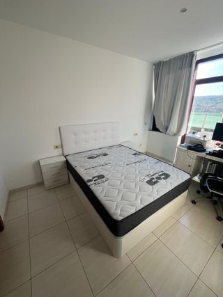 Se vende canapé y colchón en color blanco. - Canapé con base tapizada. - Colchón con funda protectora.