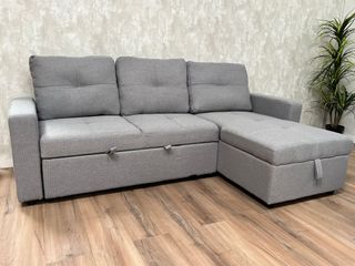 Sofá cama gris NUEVO con chaislongue y arcón