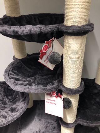 Se vende torre de 4 camas-hamacas con postes rascadores de fibra de yute para gatos,totalmente nuevo a estrenar Color gris-beige Hamaca para gatos elevada con doble poste de rascado. La hamaca de felpa proporciona un espacio cómodo para que tu gato se relaje. Ayude a evitar que tu gato dañe alfombras, sofas, muebles, cortinas,etc. Los postes de fibra de yute natural ayudan a mantener las uñas sanas. Los tonos de color neutro se adaptan a la decoracion de tu hogar. Fabricación duradera de primera calidad Con bolitas golpeadoras de repuesto Medidas ancho 99cm, alto 125cm, profundo 40cm !!!ULTIMAS UNIDADES!!!