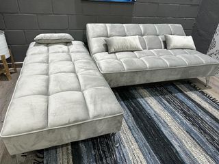 Sofá cama de estilo moderno, con un acabado suave y agradable al tacto. clic-clac - Diseño capitoné. - Patas metálicas. - Cojín adicional incluido.