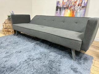 Sofa cama de tres plazas, ideal para espacios pequeños. Es cómodo y elegante, perfecto para cualquier salón. - Diseño moderno y sencillo. - Tapizado en tela. - Patas de madera.