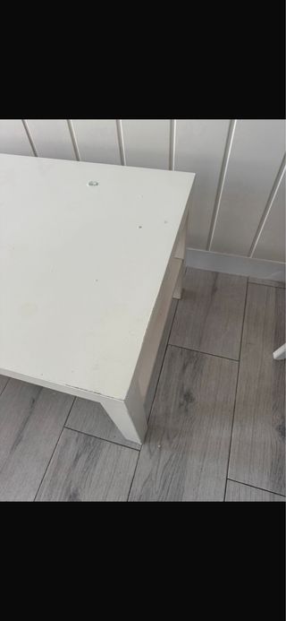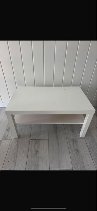 Mesa de centro blanca de madera, sofá cama, mueble