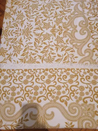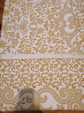 Colcha vintage con un bonito estampado floral y detalles de estilo barroco. - Diseño en tonos dorados y blancos. - Ideal para camas de 90 cm. - Acabado con flecos en uno de los extremos.