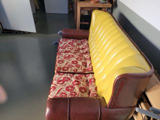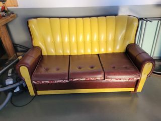 Sofá cama vintage piel 3 plazas marron y amarillo