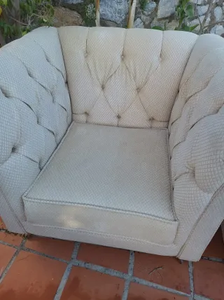 Elegante pareja de sillones estilo Chester. - Diseño clásico y atemporal. - Tapicería capitoné. - Patas robustas. Muy voluminosos Precio negociable