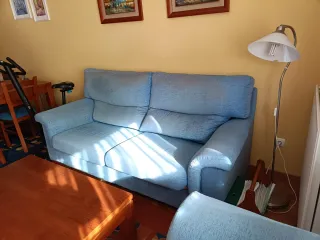 Por traslado de domicilio vendo conjunto de sofás de tres y dos plazas, fundas extraibles, muy cómodos. Extensibles. Envio no disponible. El de tres plazas medidas: 1,90 ancho x 1,05 alto y 92 cm fondo Dos plazas: 1,65 ancho x 1,05 de alto y 92 cm de fondo