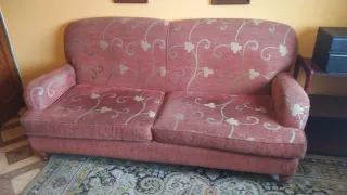- Sofá de tres plazas: 100€ - Dos sillones individuales: 100€ - Tapicería de terciopelo.