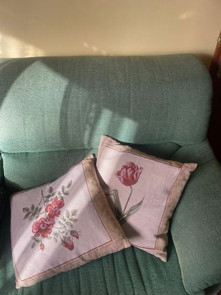 a recoger solo esta tarde o mañana por la mañana!!Conjunto de dos sofás. - Color beige y verde. - Material de tela chenilla - alta gama