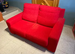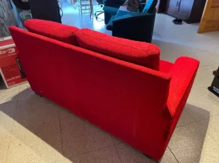 Sofá de dos plazas con tapizado en tela. Muy amplio y confortable, con cojines desenfundables para lavadora. Mide 203x95x93. En buen estado; Tiene algunos pequeños desperfectos de paso del tiempo. Nada destacable. Solo recogida en persona y por cuenta propia. Regalo funda extra y cojines de Amaya Arzuaga. - Diseño moderno y confortable. - Color rojo vibrante.