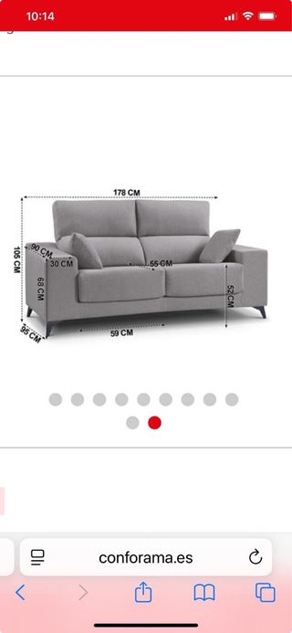 Sofá chaiselongue de tres plazas con medida de chaiselong 1,65 , largo 2,95 , medida de cada asiento 75cm - Tapicería de tela. - Color gris. - Incluye dos pufs a juego. -asientos reclinables y cabeceros. -canape en parte de chaiselong. Tiene un pequeño agujerito de una chispa de algun cigarro pero casi ni se aprecia. Y uno de los pufs lo que es la tapa esta partido , ya que se sento alguien y me lo rompio. Por lo demas esta perfecto , hasta me da pena venderlo , pero se me queda pequeño y necesito tener uno.un poquito mas grande. El precio no es negociable y no hago envios. Este sofa me costo 1000€ en conforama y lo estoy dejando