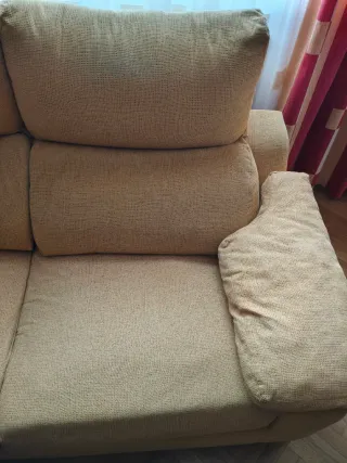 Sofá de dos plazas en color beige, ideal para cualquier salón. - Tapicería de tela. - Diseño moderno y confortable. - 2m de ancho - Sin apenas uso