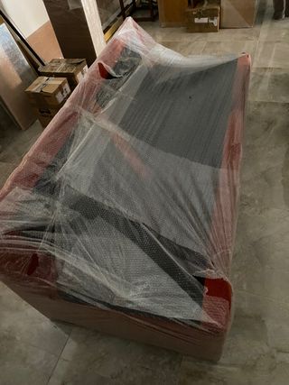 Sofá paño color naranja oscuro de dos plazas de 190 x 92 en muy buen estado envuelto en plástico burbujas proteccion mudanza con las bases de asiento y respaldo en perfecto estado