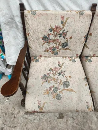 Acogedor sofá biplaza con un diseño vintage que aportará un toque especial a tu hogar. - Tapicería floral multicolor. - Estructura de madera oscura. - Dos plazas cómodas. Sofá 2 plazas Vintage - Estructura Madera y Tapicería Floral Descripción: En venta precioso sofá de dos plazas de estilo clásico/vintage en muy buen estado. Es una pieza robusta y elegante, ideal para salones con encanto, casas rurales o como proyecto de decoración shabby chic. Estructura: Fabricada en madera maciza con un bonito acabado natural y detalles torneados en las patas y el respaldo. La estructura es muy firme y estable. Tapicería: Tela de alta calidad