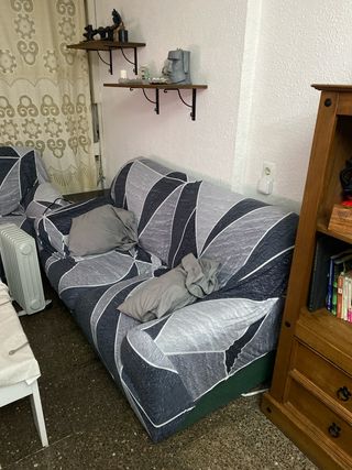 Sofá de dos plazas muy cómodo. tiene roto los cojines(con una funda nueva queda perfectamente ) pero el resto esta bien . - Tapicería de tela. - Diseño moderno.