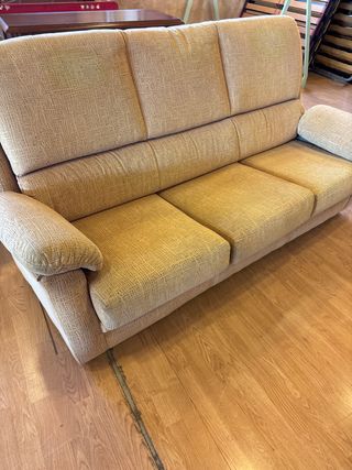 Cómodo sofá de tres plazas con un diseño moderno y elegante.Y dos butacas a juego ,el sofa mide 1,95m y las butacas 85cm cada una de ancho - Tapicería de tela. - Tonos beige y amarillos. EL TRANSPORTE ESTA INCLUIDO EN EL PRECIO EN ALICANTE CAPITAL