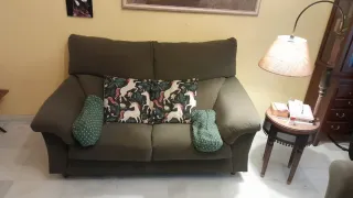 Cómodos sofás de dos y tres plazas. Precio de conjunto de dos. Por separado 100 e el de dos plazas y 150 el de tres plazas. - Diseño moderno y elegante. - Patas de madera oscura. BADAJOZ CAPITAL.