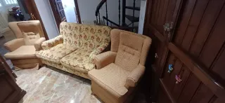 se vende conjunto de sofas , dos sillones recluinables y uno de tres plazas .