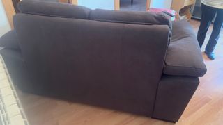 Cómodo sofá de dos plazas grandes. Su diseño se adapta a cualquier estancia.de profundo es 1,10 pero se abre y hace 1,35 - Tapicería de tela. - Color marrón.