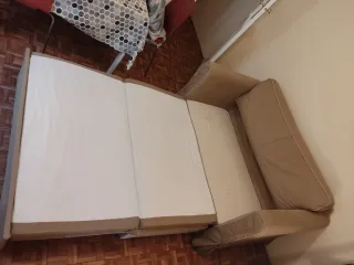 Sofá cama de dos plazas ikea en color beige, perfecto para espacios reducidos o como asiento adicional. - Cama muy fácil y rápido de montar. - Diseño moderno y funcional. - Funda extraíble para facilitar la limpieza. Tiene rascadas de un gato en los laterales, pero el resto esta perfecto.