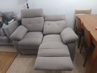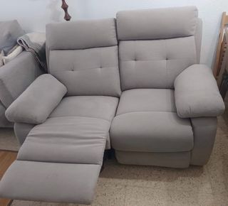 Cómodo sofá reclinable de dos plazas, con 2 meses de uso. Es como si lo estrenaras de nuevo. - Tapicería de tela. - Color gris claro.