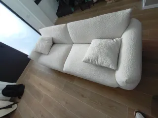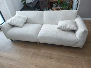 Cómodo sofá de dos plazas con un diseño moderno. Perfecto para cualquier sala de estar. Tapicería de tela. Recomiendo pasarle la máquina de bolas de vez en cuando. Ya está desmontado para un mejor transporte. Las fundas no tienen manchas y se lavan bien en la lavadora. También venden fundas de otros colores. Las imágenes son actuales, le falta un lavado para volver a estar en su mejor momento y ya. Medidas: Ancho 228cm Fondo 95cm Alto 83cm A recoger cerca de sagrada familia durante esta semana