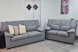 SOFÁ DE 2 Y 3 PLAZAS DE TELA TRADICIONAL EN GRIS