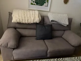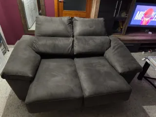 Sofá reclinable 2 plazas – fundas lavables. Sofá de 2 plazas muy cómodo y en excelente estado, ideal para salón o sala de estar. - Reclinable en ambos asientos, perfecto para relajarse viendo una peli o echar la siesta. - Fundas desenfundables y lavables, fácil de mantener siempre limpio. - Tejido suave tipo microfibra en color gris oscuro, muy combinable con cualquier estilo. - Estructura sólida y cojines mullidos. 📏 Medidas: 160 cm de ancho x 100 cm de fondo. 💶 Precio: 260 € 📍 Recogida en Sevilla. 💬 Se entrega limpio y en muy buen estado.
