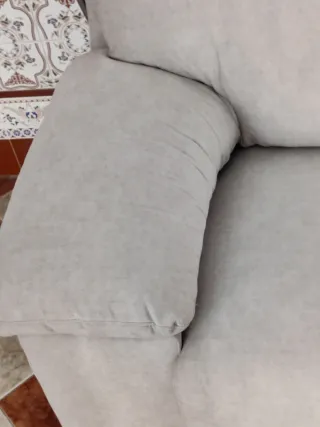 Sofá de tres plazas en un bonito tono beige con toques grisáceos. Su diseño moderno se adapta a cualquier salón. - Tapicería de tela microfibra. -Tiene de uso solo 5 meses.Cambiado por otro por hacer reforma. Tiene de largo 2 m. Altura del suelo al final reposacabeza 1 m. Altura del suelo al cojín 45 cm . Fondo 91 cm Está casi como nuevo con brazos siesta. Es muy cómodo. REGALO LA FUNDA GRIS QUE APARECE EN LAS DOS ULTIMAS FOTOS. Su precio real fueron 600€. Recogida en domicilio.