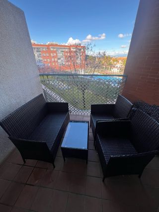 Conjunto de mobiliario de exterior de alta calidad.Conjunto abajo chillout: Sillón chico: 105 ancho, 76 alto Sillón grande: 238 ancho, 76 alto Mesa rectangular: 140 largo, 80 ancho, 44 alto Precio original 7.500 euros.Muy cuidado. Lo vendo por mudanza. Disponible para recoger entre el 28 y el 30 de noviembre. Precio final para venta rápida. - Sofá de tres plazas. - Dos sillones individuales. - Mesa de centro con superficie de cristal. Y mesa auxiliar. - Estructura de rattan resistente.