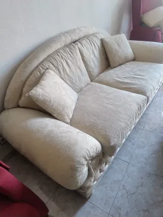 Cómodo sofá de dos o tres plazas, perfecto para tu salón. Es muy cómodo. - Tapicería de tela. - Color beige. - Muy bien estado.