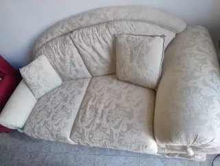 Se vende conjunto de sofá de dos piezas, uno de tres plazas y otro de dos plazas. La tela de polipiel está en perfectas condiciones pero los cojines habría que cambiar los como se puede observar en las fotos. - Sofá de 3 plazas. - Sofá de 2 plazas.