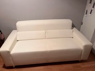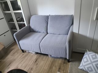 Acogedor sofá de dos plazas. Está como nuevo, apenas sin uso. La tela esta nueva, sin manchas, cojines con cremallera. Tiene un bolsillo en un lateral para guardar mandos. Además, debajo tiene espacio para guardar bastantes cosas, es muy útil. En Ikea vale 250€, 150€ más. Medidas: Altura incl. cojines del respaldo: 89 cm Ancho: 137 cm Fondo: 84 cm