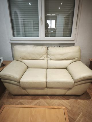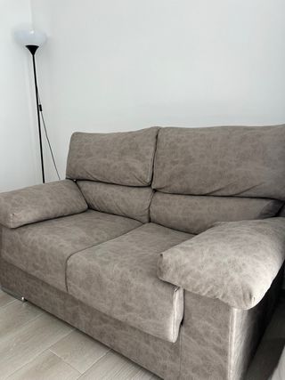 Vendo sofá de 2 plazas, tapizado en tela color beige/gris claro. Es cómodo y está en buen estado general, sin roturas ni desperfectos importantes. Ideal para salón, piso pequeño o apartamento. Se vende por cambio de mobiliario.