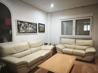 Conjunto de muebles de salón: - Sofá de dos plazas. - Sofá de tres plazas. - Mueble cama plegable de 105x180 con colchón nuevo. - Mesa redonda de 90 de diámetro, abatible hasta 120x90. No se incluyen las sillas. Recoger en Santa Pola (Alicante)