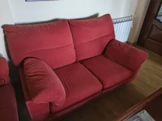 Conjunto de sofás de dos y tres plazas en color rojo. - Sofá de tres plazas. - Sofá de dos plazas.