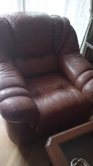 Sofá de piel marrón 3 plazas y dos individuales