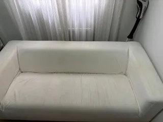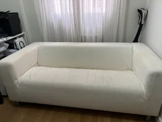 Sofá KLIPPAN de dos plazas, con funda en color blanco. - Además te doy una funda blanca a colocar y estrenar. - Diseño moderno y funcional. - Estructura de madera resistente. - No enviamos, tienes que venir a verlo.