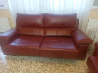 Conjunto Sofás 3+2 Piel. Color marrón caoba.