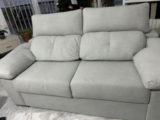 Conjunto de sofás de dos y tres plazas en color gris Son muy cómodos se puede sacar el asiento en todos. Cabecero reclinables. La tela es antimanchas. - Sofá de 3 plazas. - Sofá de 2 plazas.