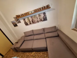 Vendo Sofá de dos plazas, muy cómodo y en bastante buen estado. No tiene ninguna rotura, solo algún desgaste del uso cotidiano. Estructura firme. Incluye reposa pies extensible con tablas, perfectos para estirar las piernas. Ideal para pisos pequeños, salone, campos o cuartos de estar. Única pega: una de las *cremalleras del reposabrazos está rota*, pero no afecta al uso ni al aspecto general. Se puede arreglar cambiando la cremallera. Entrega en mano. SOLO GENTE QUE PUEDA VENIR A RECOGERLO A BAILÈN (JAÈN) O QUE SE ENCARGUE LA EMPRESA DE TRANSPORTE QUE OFRECE WALLAPOP - Tapicería de tela. - Combinación de colores negro y nara