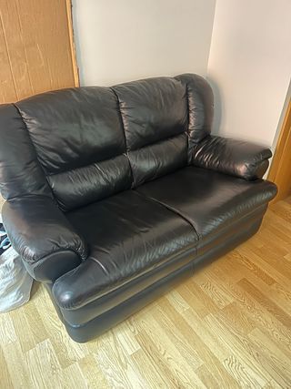 Conjunto de sofá de dos plazas y butaca a juego. - Tapicería de piel. - Diseño moderno y confortable. Solo venta en persona